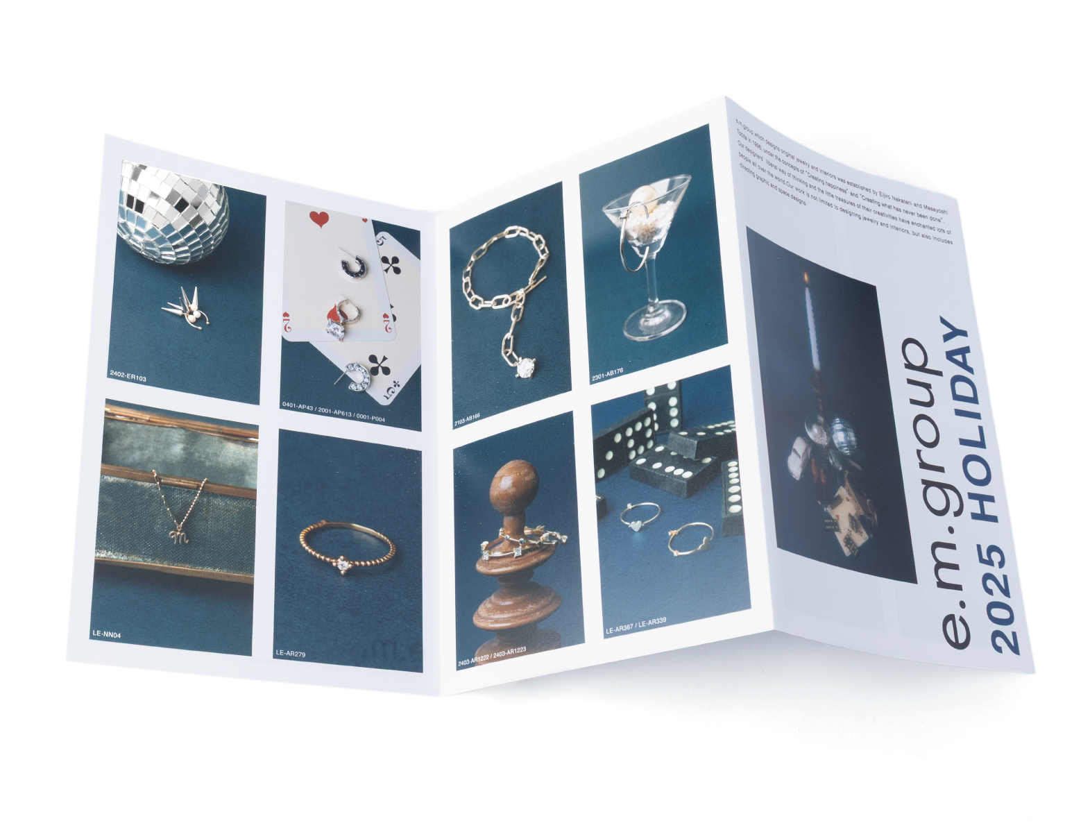 「e.m.」をはじめとした自社ブランドから発表されるオリジナルジュエリー。 シルバーやゴールドなどブランドによって素材やデザインはさまざまで、着ける方の一番近くに寄り添いながら輝くよう、デザイナーや熟練のクラフトマンたちが想いを込めて製作しています。当社のジュエリーデザインは、ブランドごとに違う世界観が魅力です。