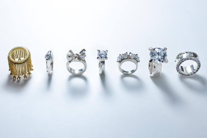 「e.m.」をはじめとした自社ブランドから発表されるオリジナルジュエリー。 シルバーやゴールドなどブランドによって素材やデザインはさまざまで、着ける方の一番近くに寄り添いながら輝くよう、デザイナーや熟練のクラフトマンたちが想いを込めて製作しています。当社のジュエリーデザインは、ブランドごとに違う世界観が魅力です。