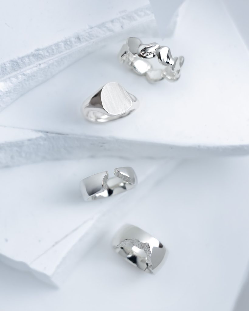 上から シルバーリング(シルバー925)¥23,100、シルバー印台リング(シルバー925)¥29,700、シルバーリング(シルバー925)¥24,200、シルバーリング(シルバー925)¥37,400 すべて税込
